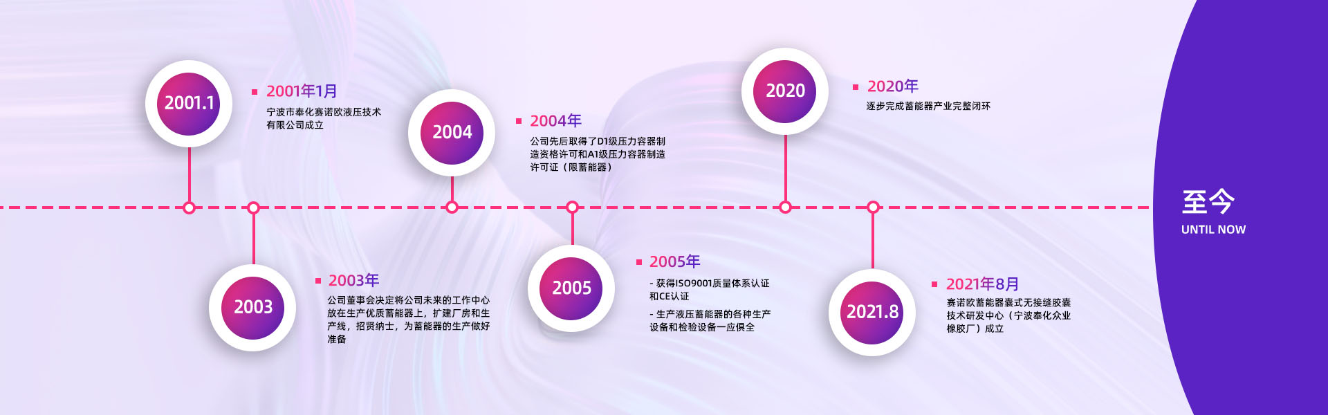 寧波市奉化賽諾歐液壓技術(shù)有限公司創(chuàng)建于2001年7月,是國內(nèi)優(yōu)秀的液壓蓄能器專業(yè)制造公司,制造設(shè)備齊全,檢測手段完善。同時也是探索蓄能器囊式結(jié)構(gòu)一體化的科研創(chuàng)新型企業(yè)。      2001年,公司董事會決定將公司未來的工作重心放在生產(chǎn)優(yōu)質(zhì)蓄能器上。公司一方面著手于廠房擴(kuò)建和生···